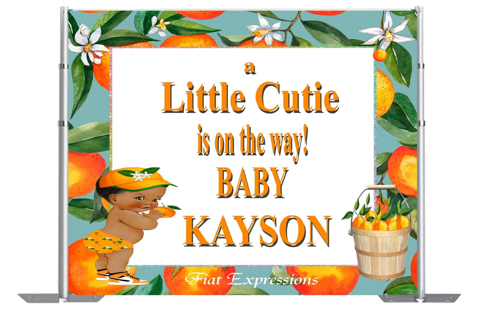 A Little Cutie Orange Boy Baby Shower Poster Backdrop Digital File