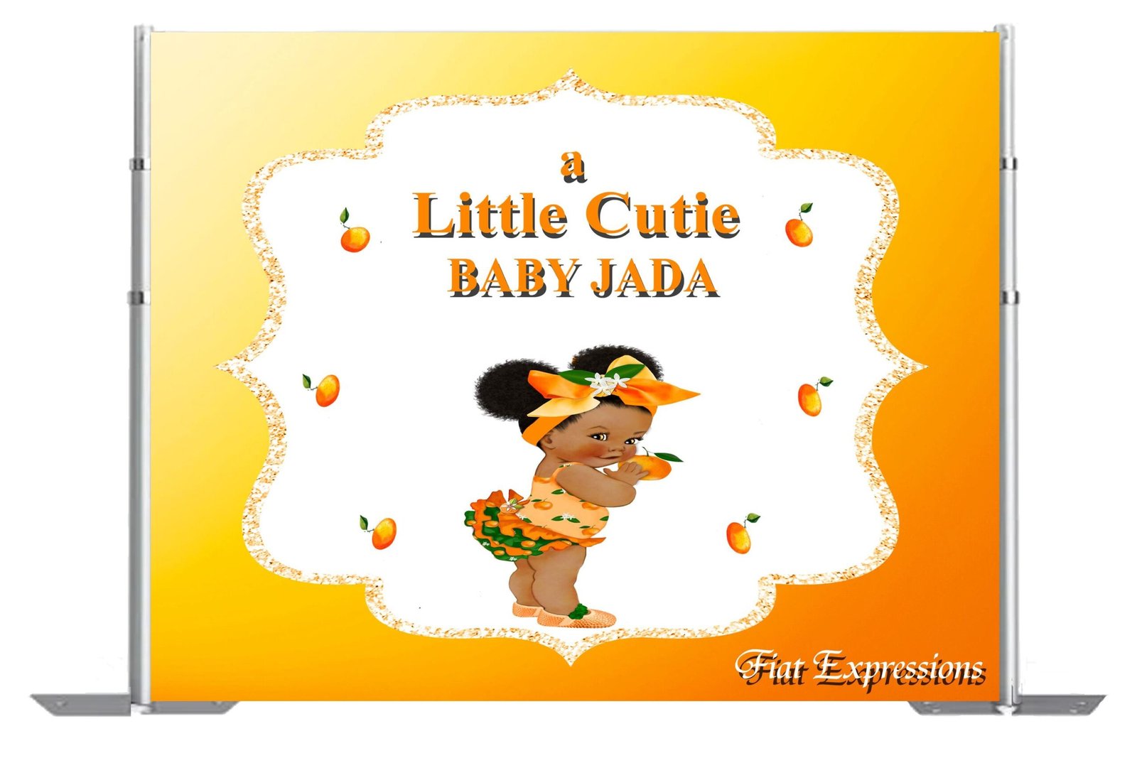 A Little Cutie Orange Girl Baby Shower Poster Backdrop Digital File