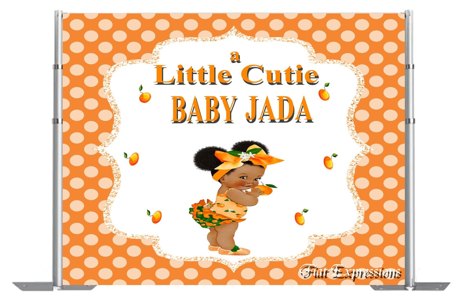A Little Cutie Orange Girl Baby Shower Poster Backdrop Digital File