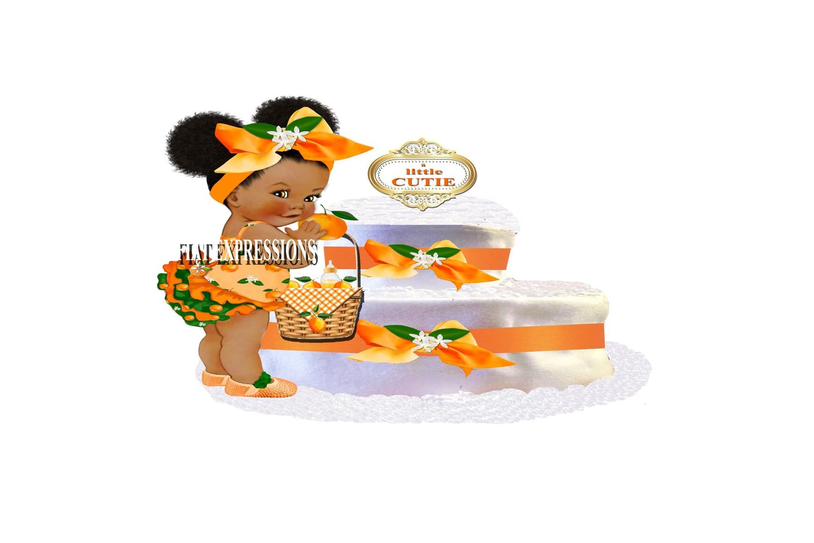 A Little Cutie Orange Girl with Basket Diaper Cake, 2 Tier Diaper Cake, Little Cutie Orange Baby Shower Centerpiece and Gift