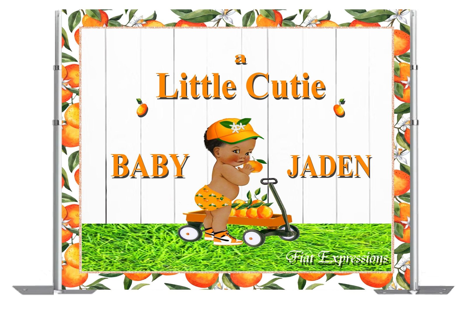 A Little Cutie Orange & Wagon Baby Shower Poster Backdrop Digital File