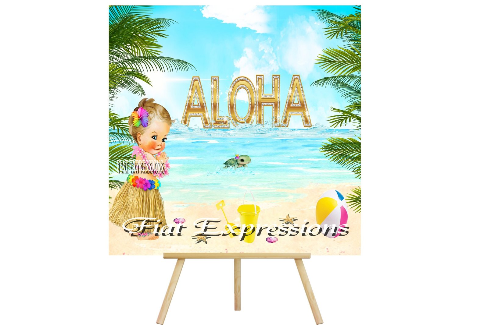 Aloha Topical Hawaiian Luau Girl Baby Shower Poster Backdrop Digital File DIGITAL
