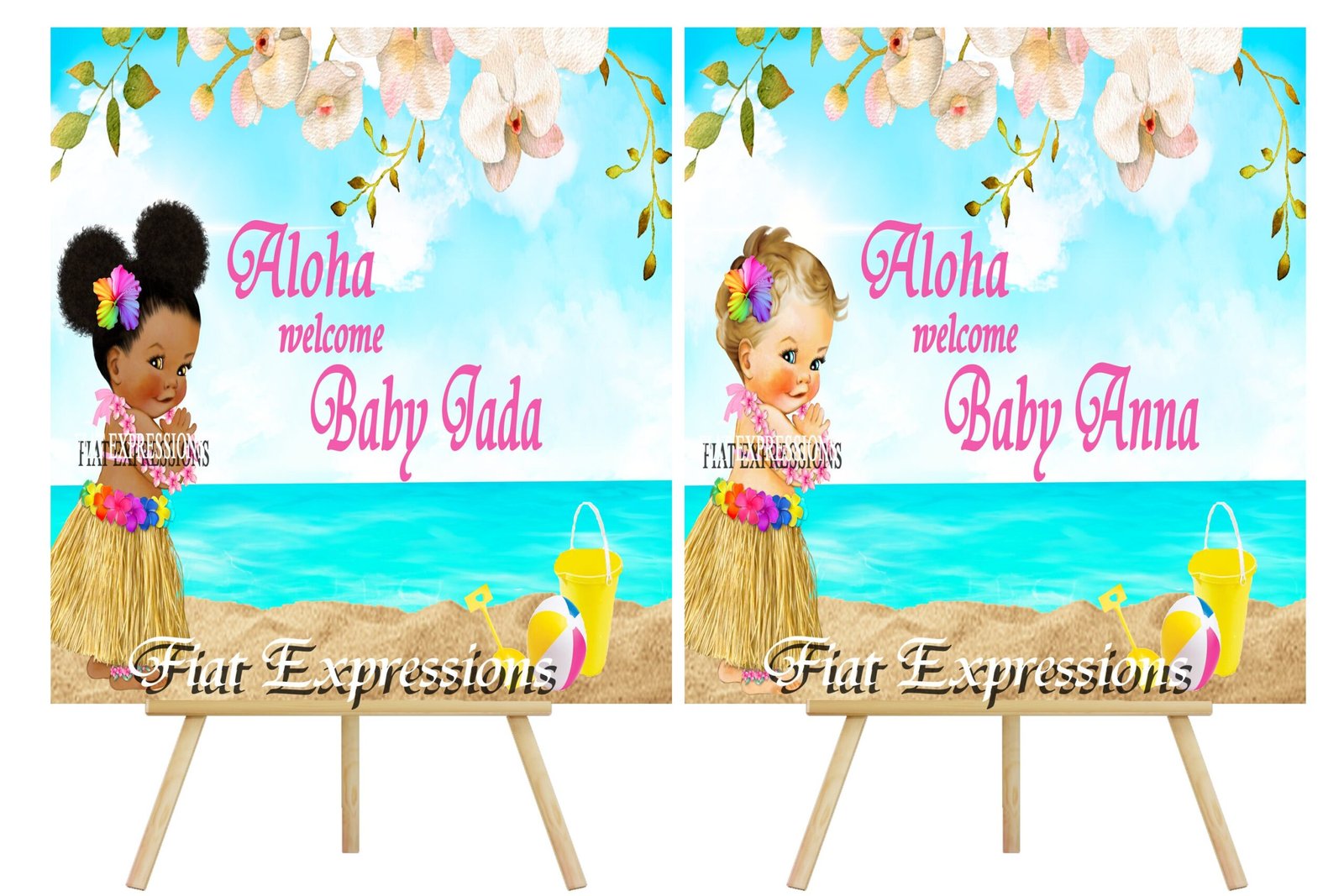 Aloha Topical Hawaiian Luau Girl Baby Shower Poster Backdrop Digital File DIGITAL