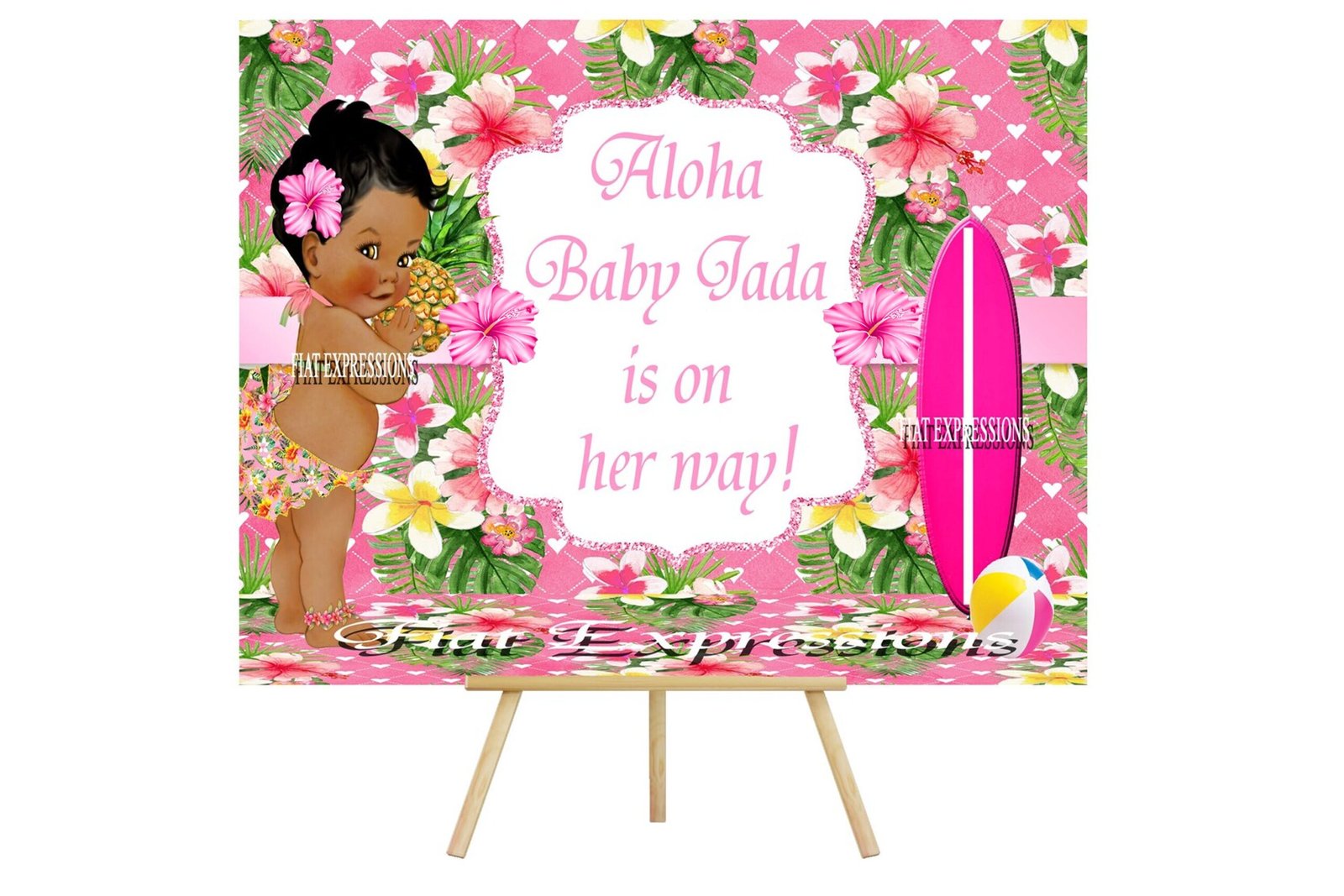 Aloha Topical Hawaiian Luau Girl Pink Baby Shower Poster Backdrop Digital File DIGITAL