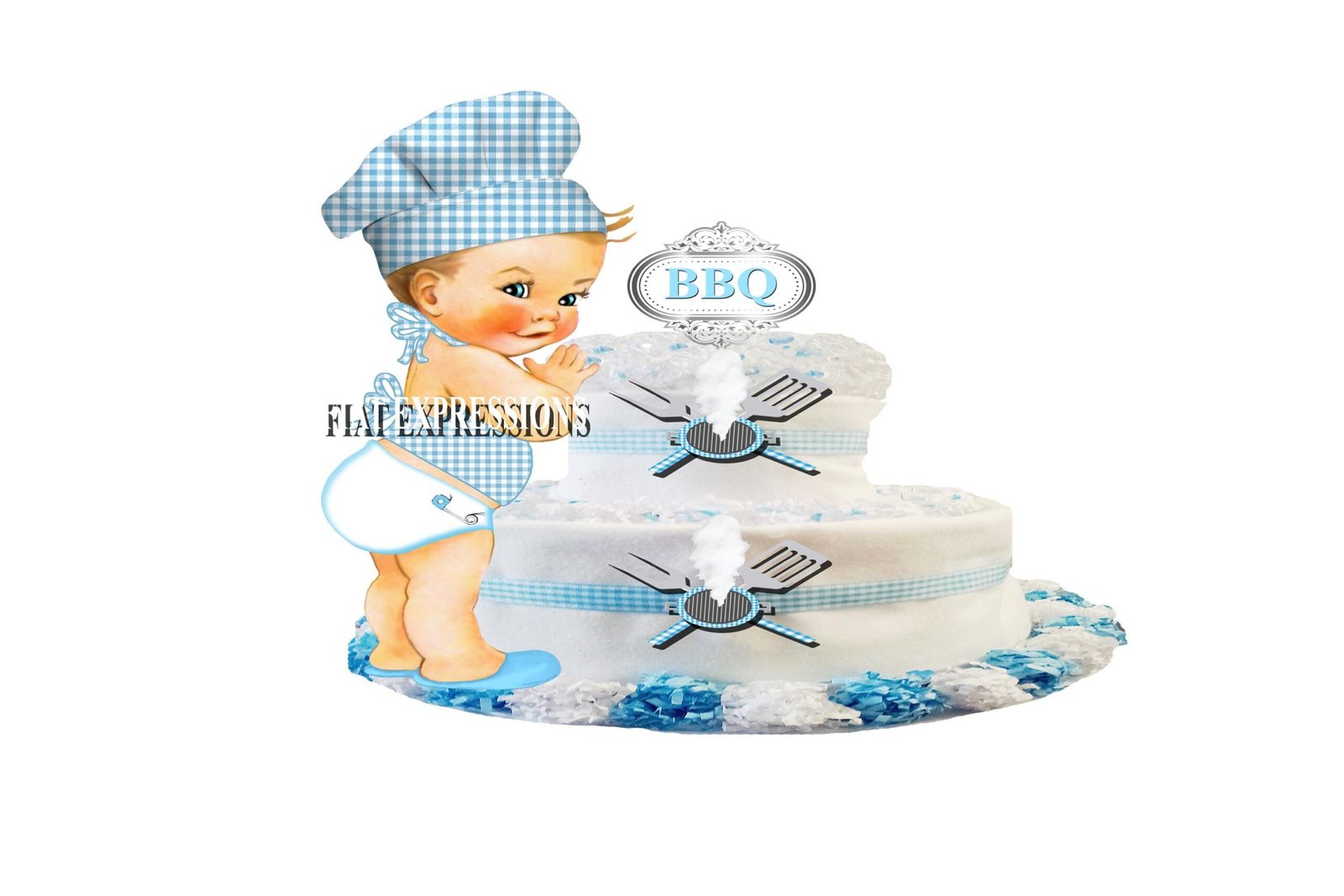 Baby-Q Boy Diaper Cake, 2 Tier Diaper Cake, Baby Shower, Baby-Q Baby Shower Centerpiece & Gift