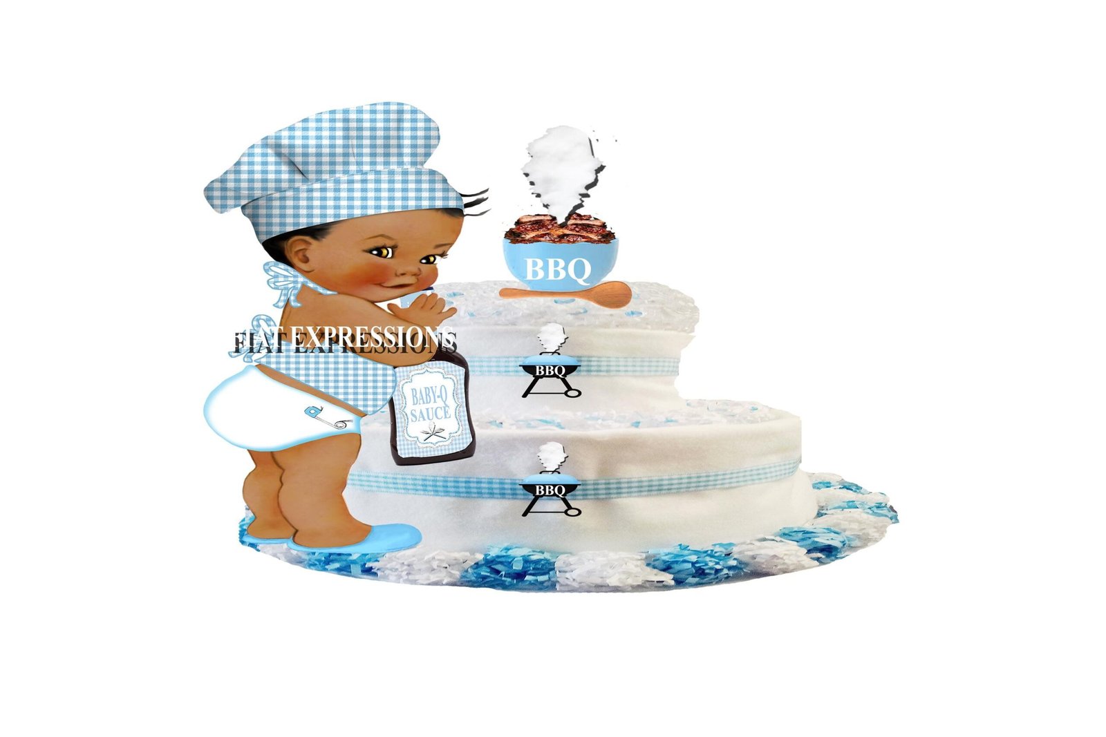 Baby-Q Boy Diaper Cake, 2 Tier Diaper Cake, Boy with Bowl and Spoon, Baby-Q Baby Shower Centerpiece & Gift