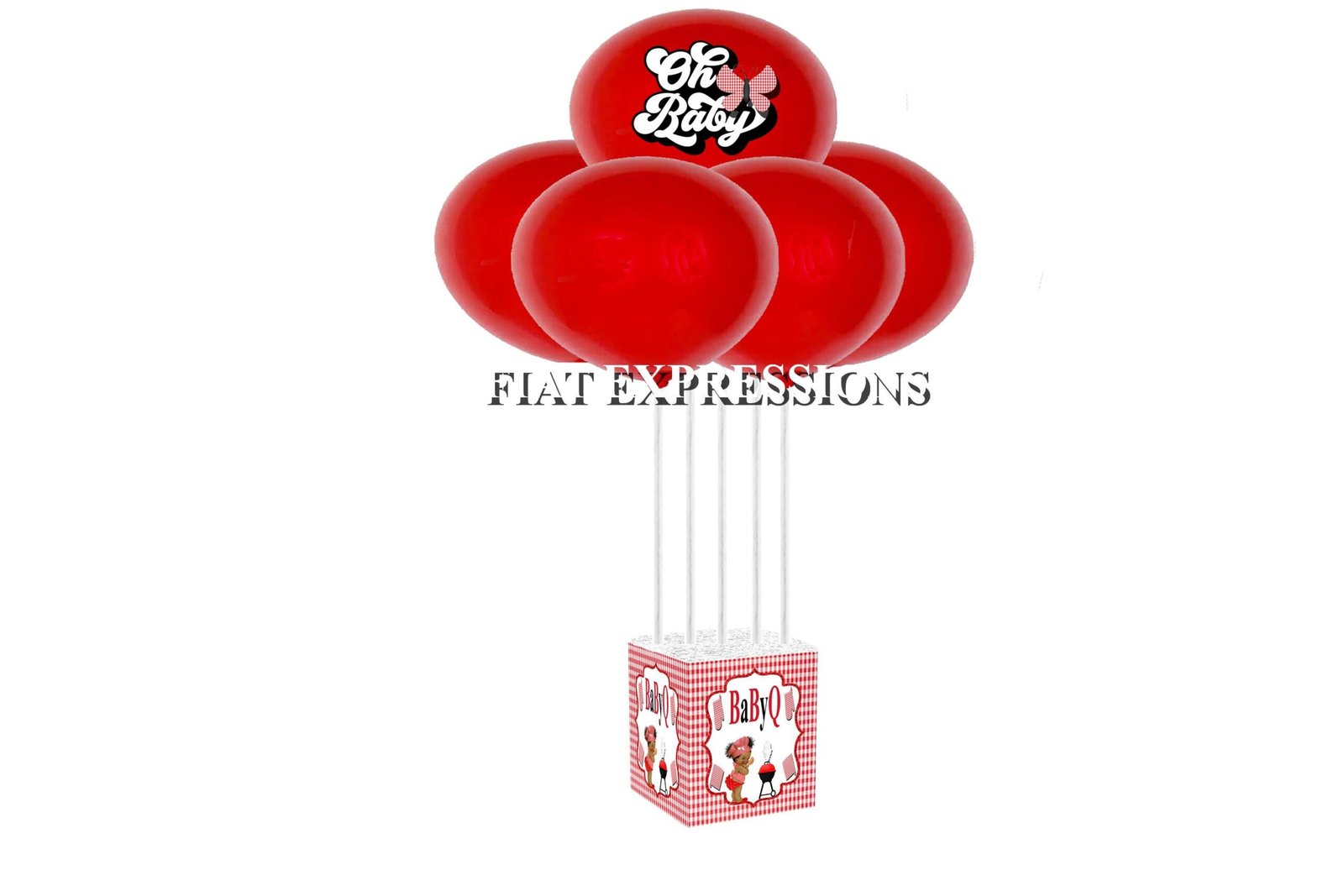 Our Baby-Q balloon bouquets will elegantly decorate a baby-q baby shower. Our balloon bouquets are able to stand on its own without any helium. You may pair our balloon bouquets with one of our ladybug diaper cakes, backdrops or edible cake image. This balloon bouquet comes with the following: