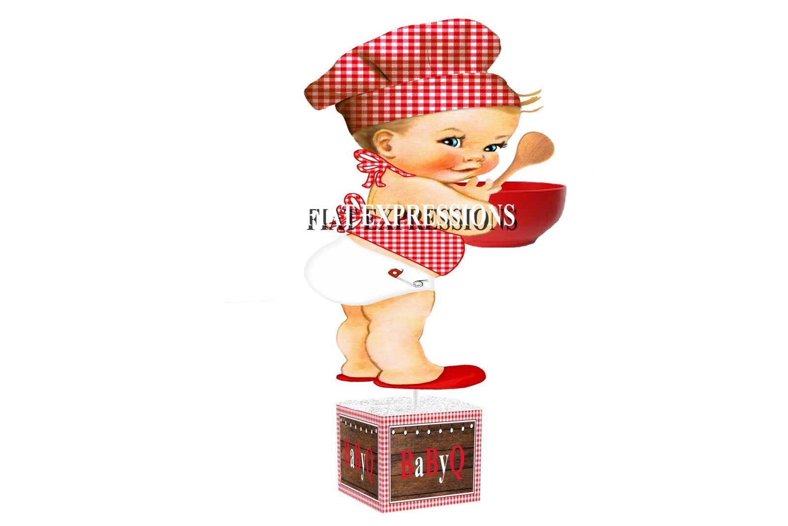 You may pair your baby centerpiece with one of our baby-q diaper cakes, balloon centerpieces, backdrops, or edible cake images. Diaper cake, balloon centerpiece, backdrop & edible cake image are not included in this price.
