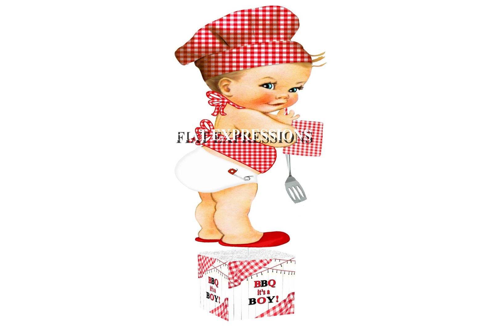 Baby-Q Red with Boy, Potholder & Spatula Baby Shower Table Centerpiece