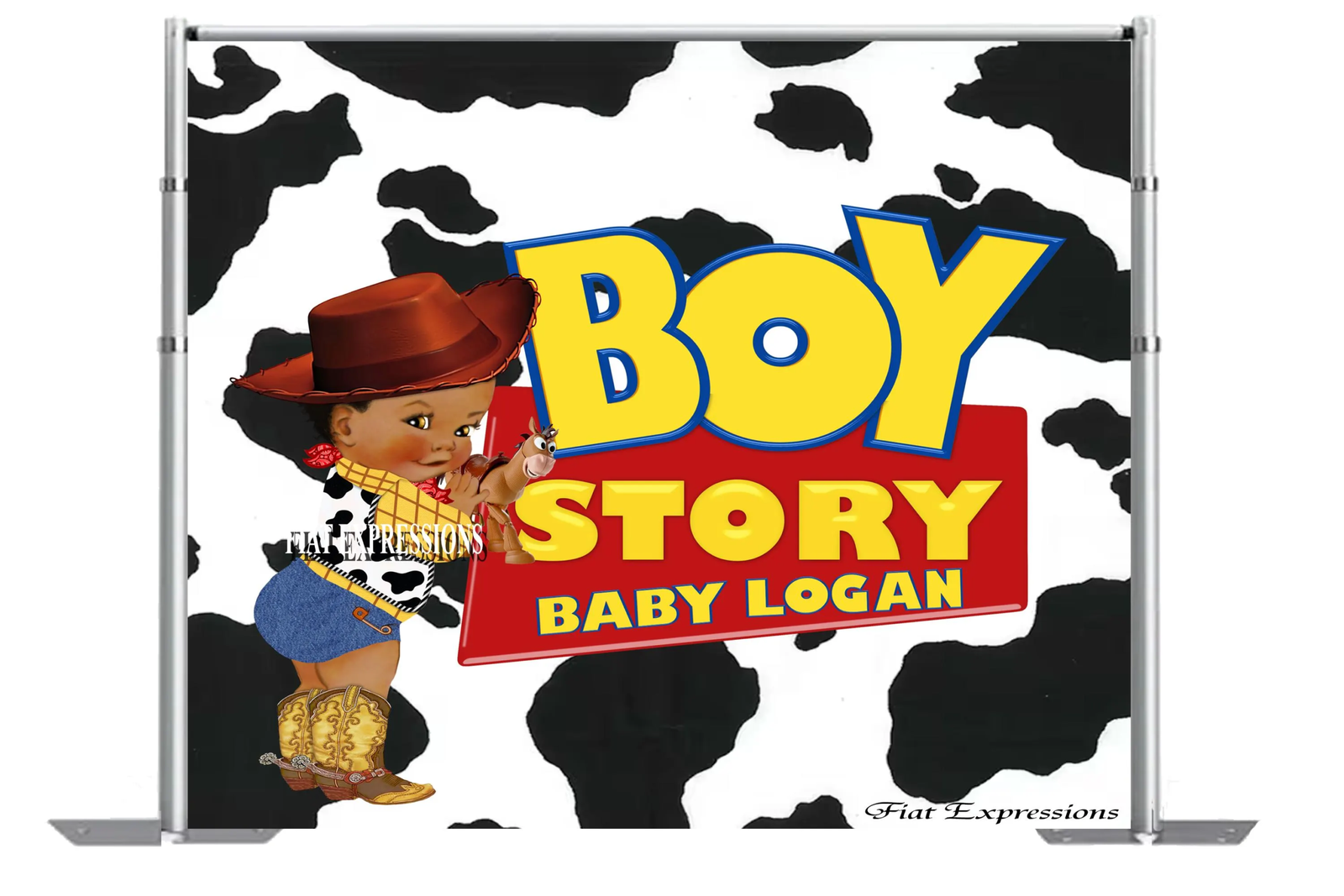 Boy Story Baby Shower Backdrop Cow Print Digital File