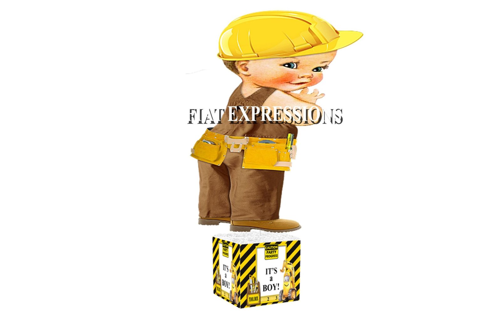 An elegant & affordable construction baby shower table centerpiece. You may pair our baby centerpiece with one of our superhero diaper cakes, balloon bouquets, backdrops and edible cake images. This centerpiece comes with the following: