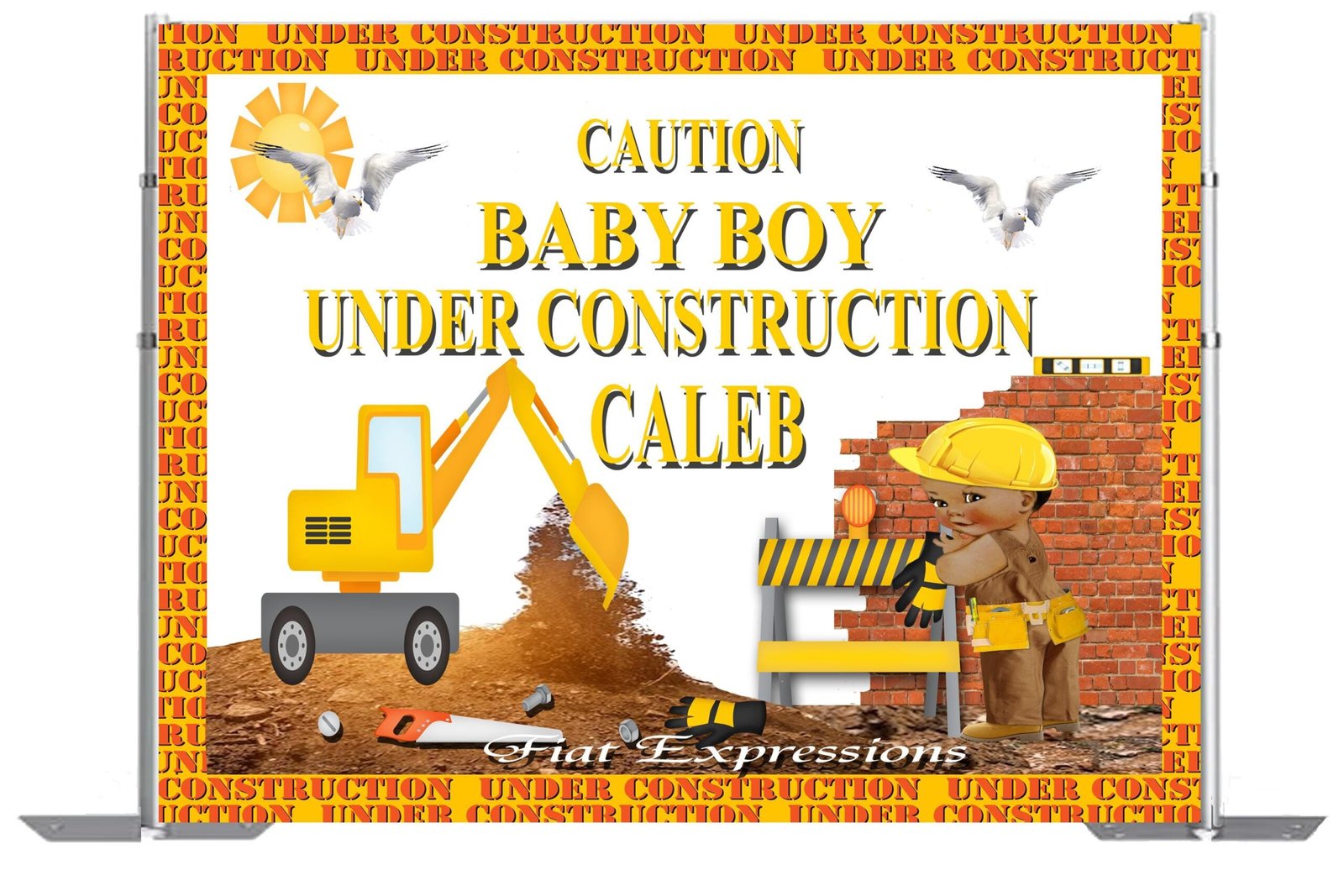 Construction in Progress Baby Shower Backdrop Digital File DIGITAL