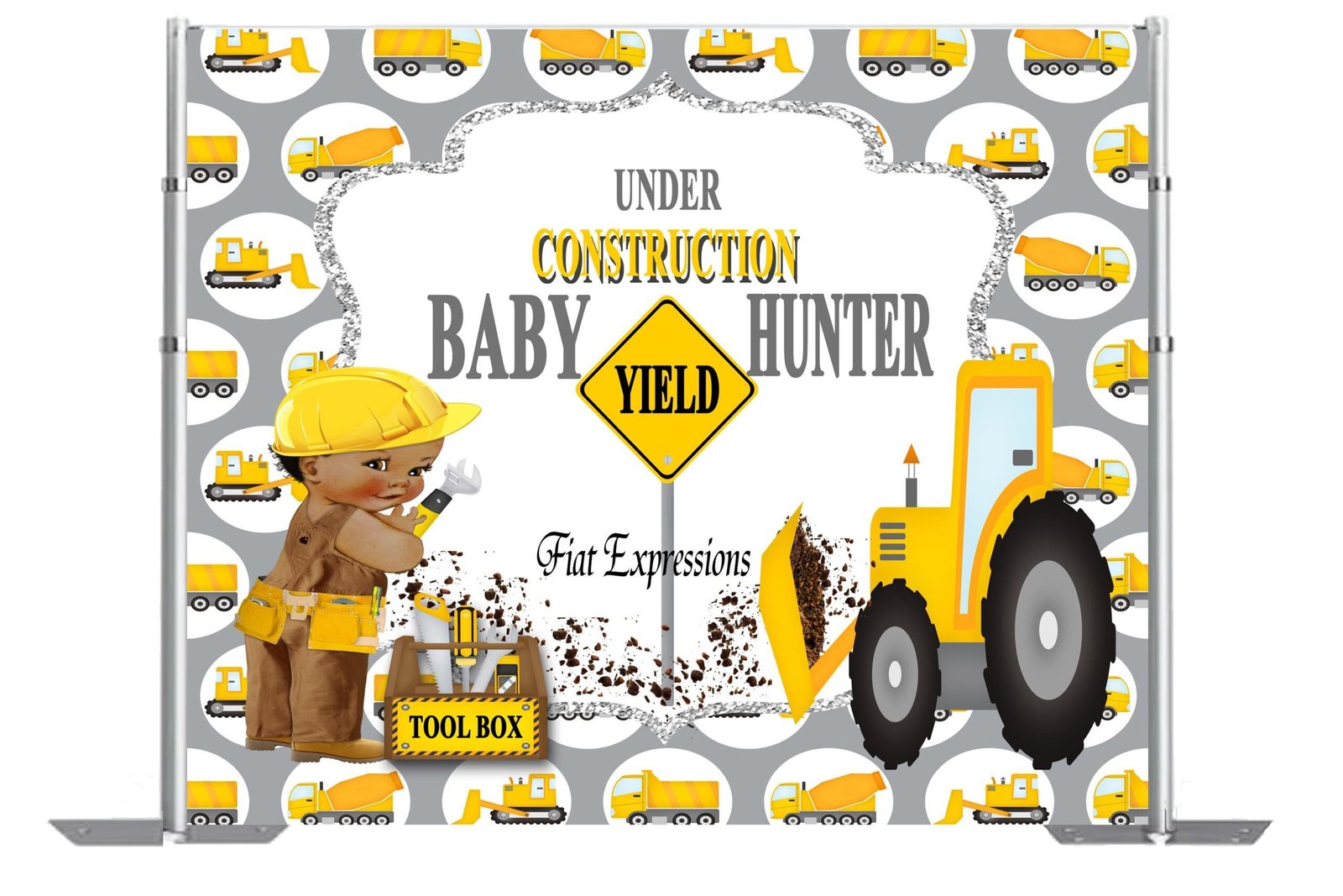 Construction Yellow & Gray Baby Shower Backdrop Digital File DIGITAL