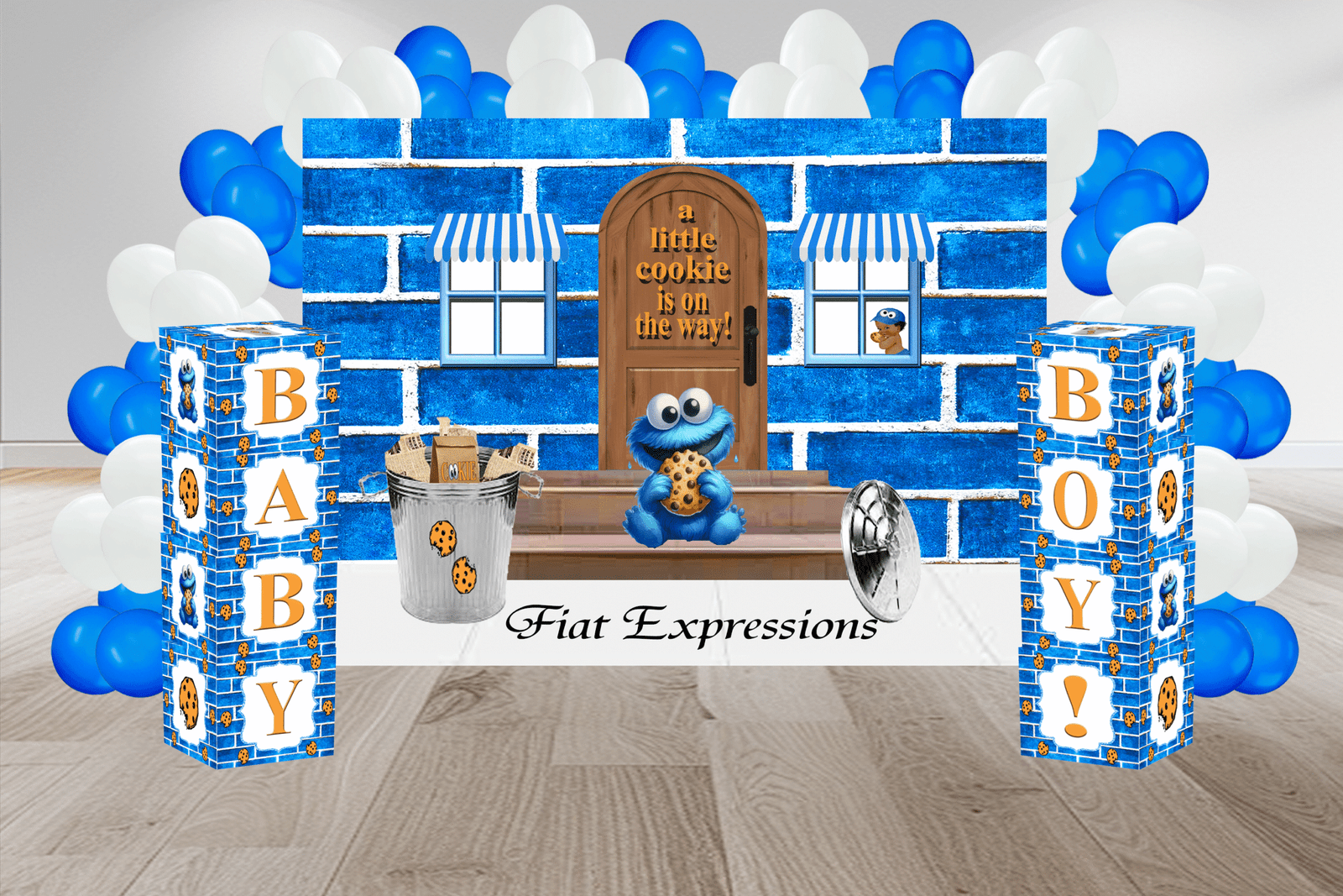 Cookie Monster Themed Baby Blocks will help decorate your baby shower. Our baby blocks come with 4 – 8 blocks. Our baby blocks standard set comes with 8 baby blocks. One stack of four blocks stands 36 inches tall. Each baby block measurements are 9 (L) x 9 (W) x 9 (H) inches. They are easy to assemble. Only one letter per block. You may add this set to your cookie monster themed baby shower backdrop. You may customize the wording for your baby blocks.