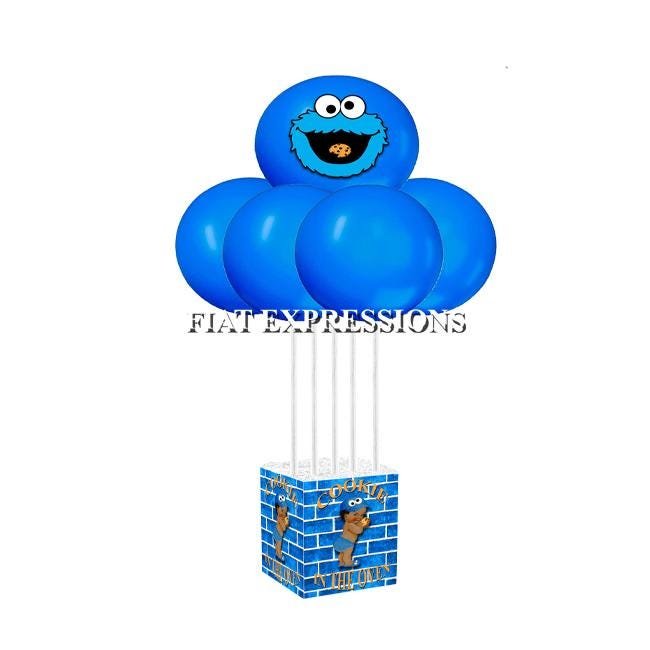 Our Cookie Monster Themed balloon bouquets will elegantly decorate a cookie monster themed baby shower. Our balloon bouquets are able to stand on its own without any helium. You may pair our balloon bouquets with one of our diaper cakes, baby centerpieces, backdrops or edible cake images for an additional cost.