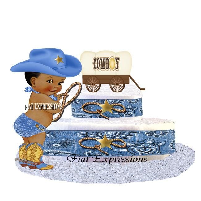Cowboy Diaper Cake 2 Tier Burp Cloth Country Western with Wagon/Cowboy Baby Shower Centerpiece and Gift