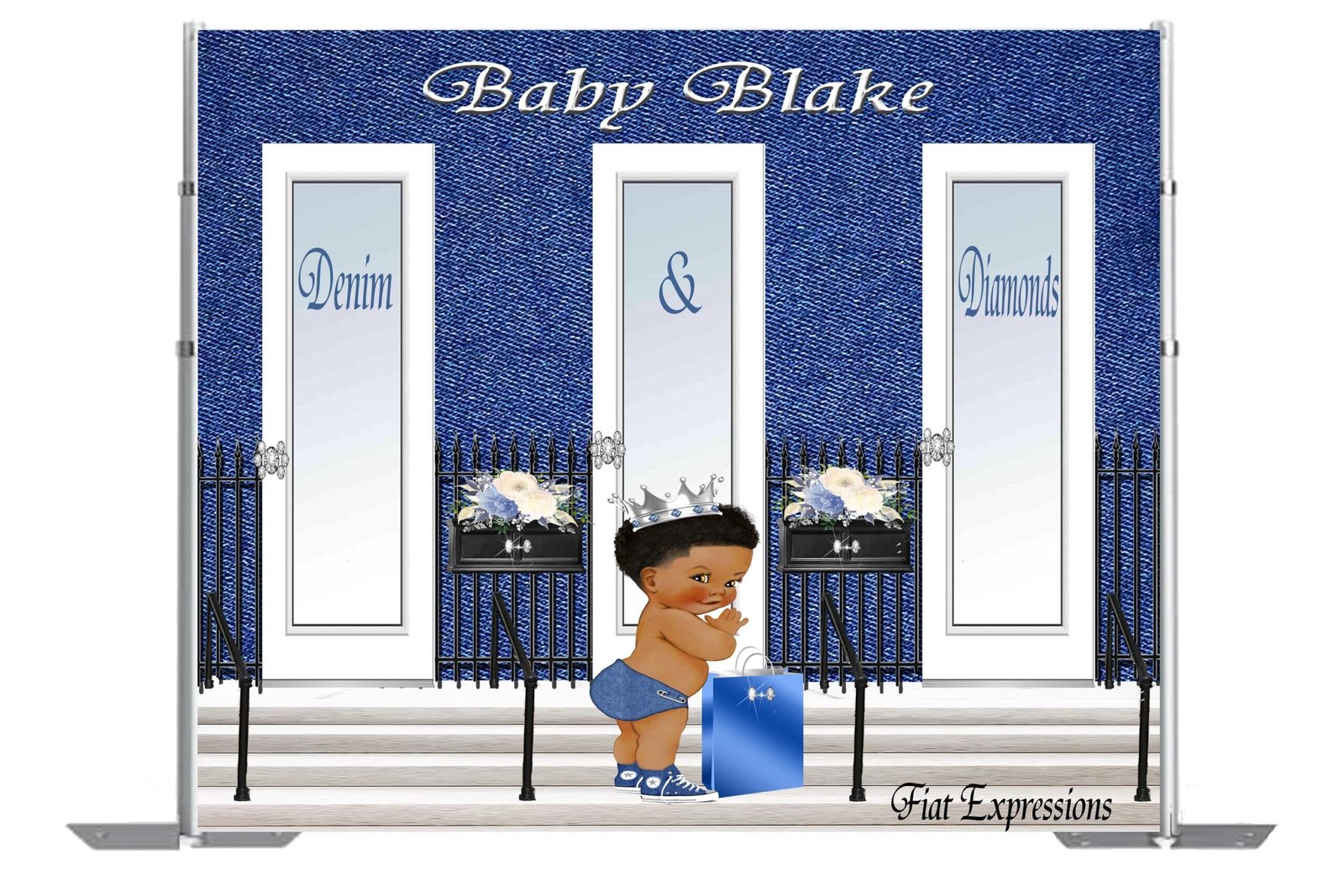 Denim & Diamonds Boy at Store Baby Shower Poster Backdrop Digital File