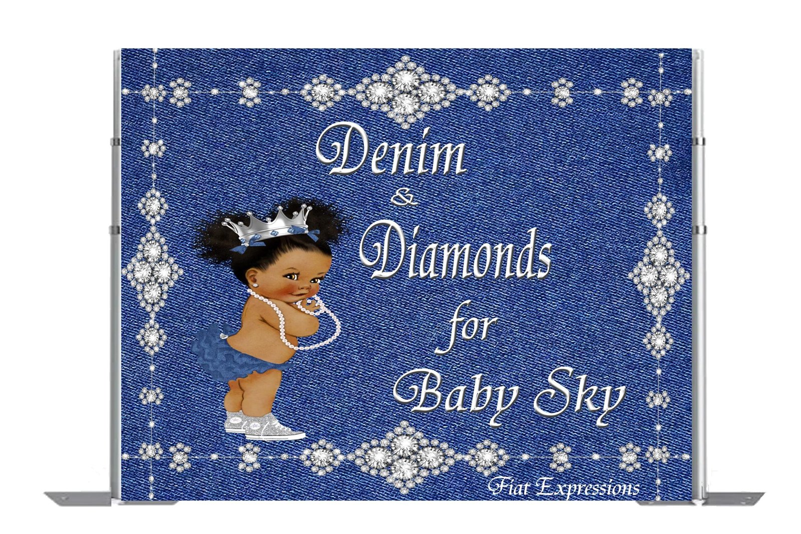 Denim & Diamonds for a Girl Baby Shower Poster Backdrop Digital File