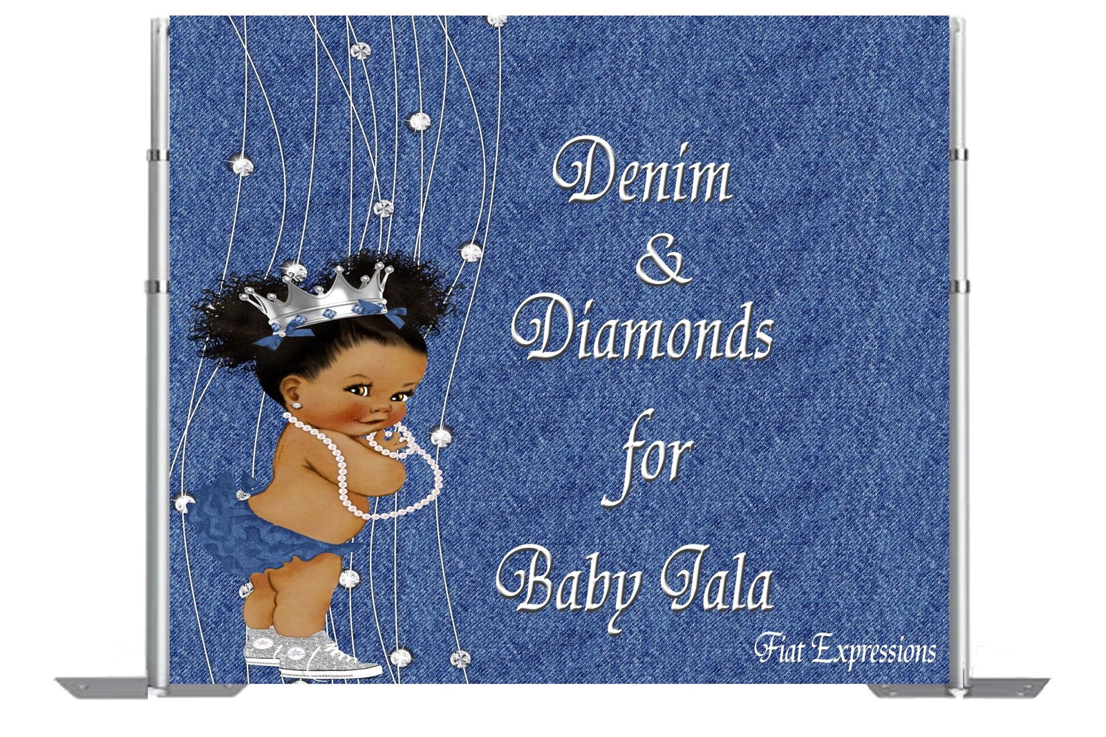 Denim & Diamonds for a Sweet Girl Baby Shower Poster Backdrop Digital File