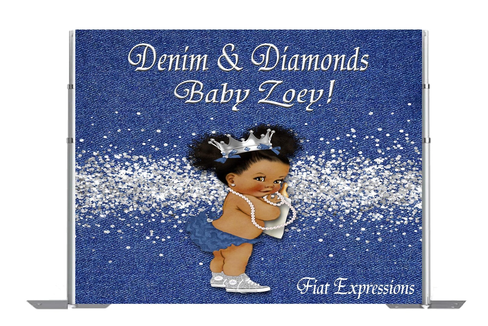 Denim & Diamonds Girl with Bottle Baby Shower Poster Backdrop Digital File