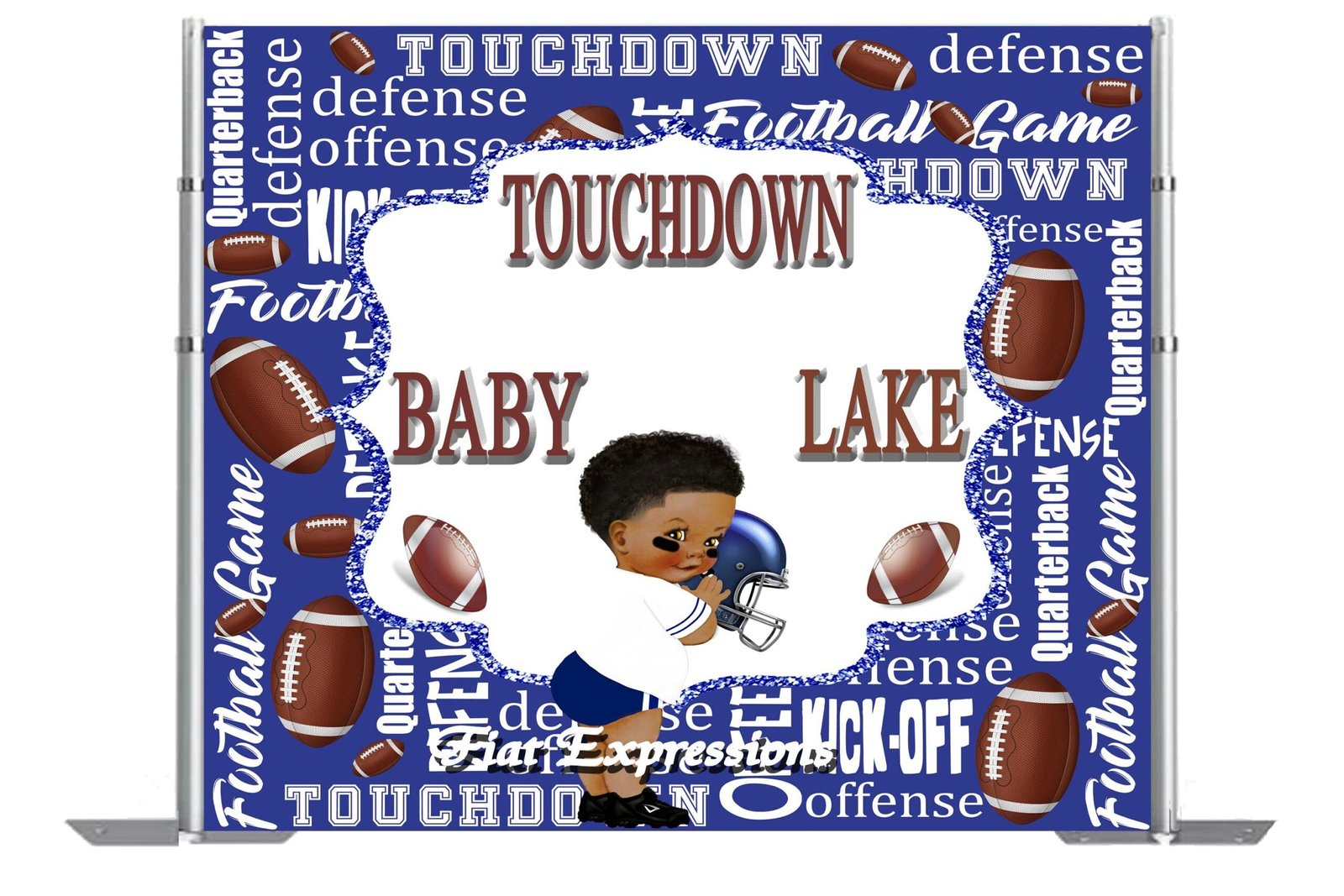 You may pair our sports backdrop with one of our sports diaper cake, baby centerpiece, balloon bouquet or edible cake image for an additional price.