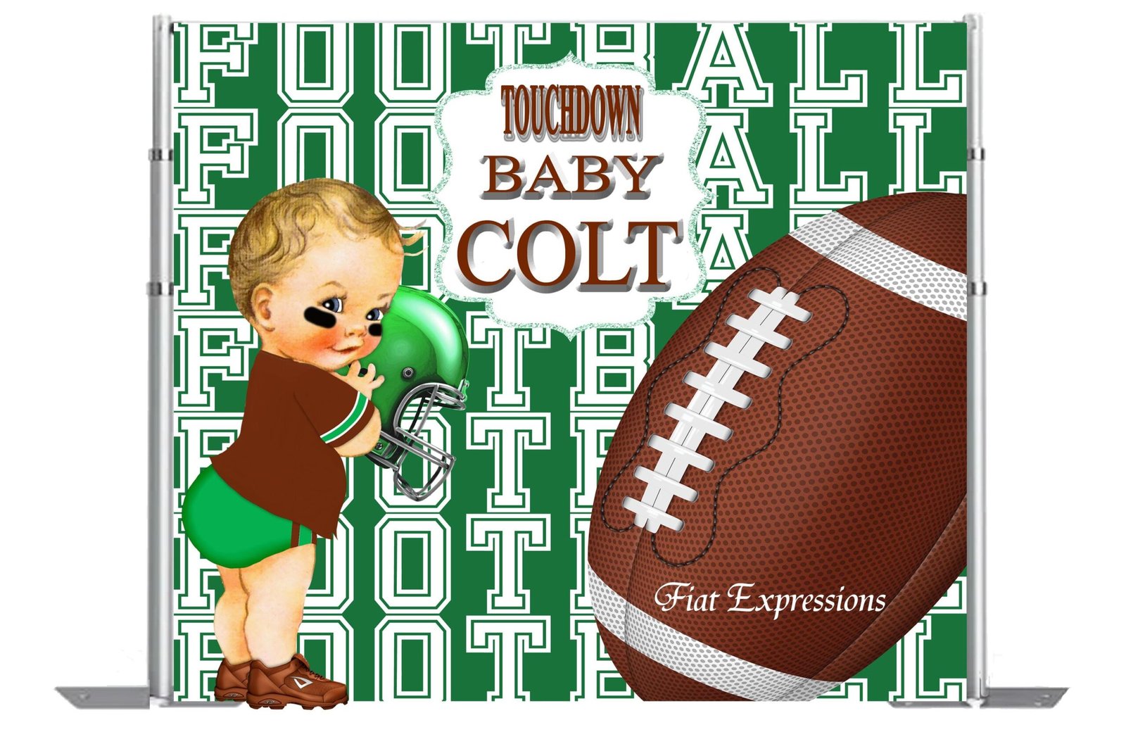 You may pair our sports backdrop with one of our sports diaper cake, baby centerpiece, balloon bouquet or edible cake image for an additional price.
