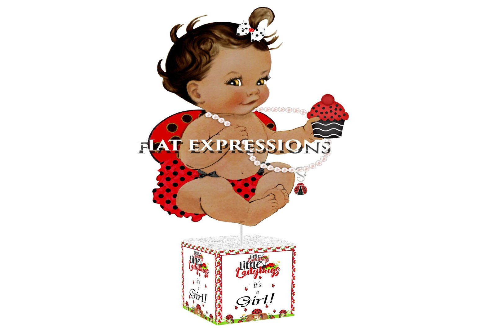 Ladybug Sitting Baby Shower Centerpiece Red, Ladybug eating her Cupcake Baby
