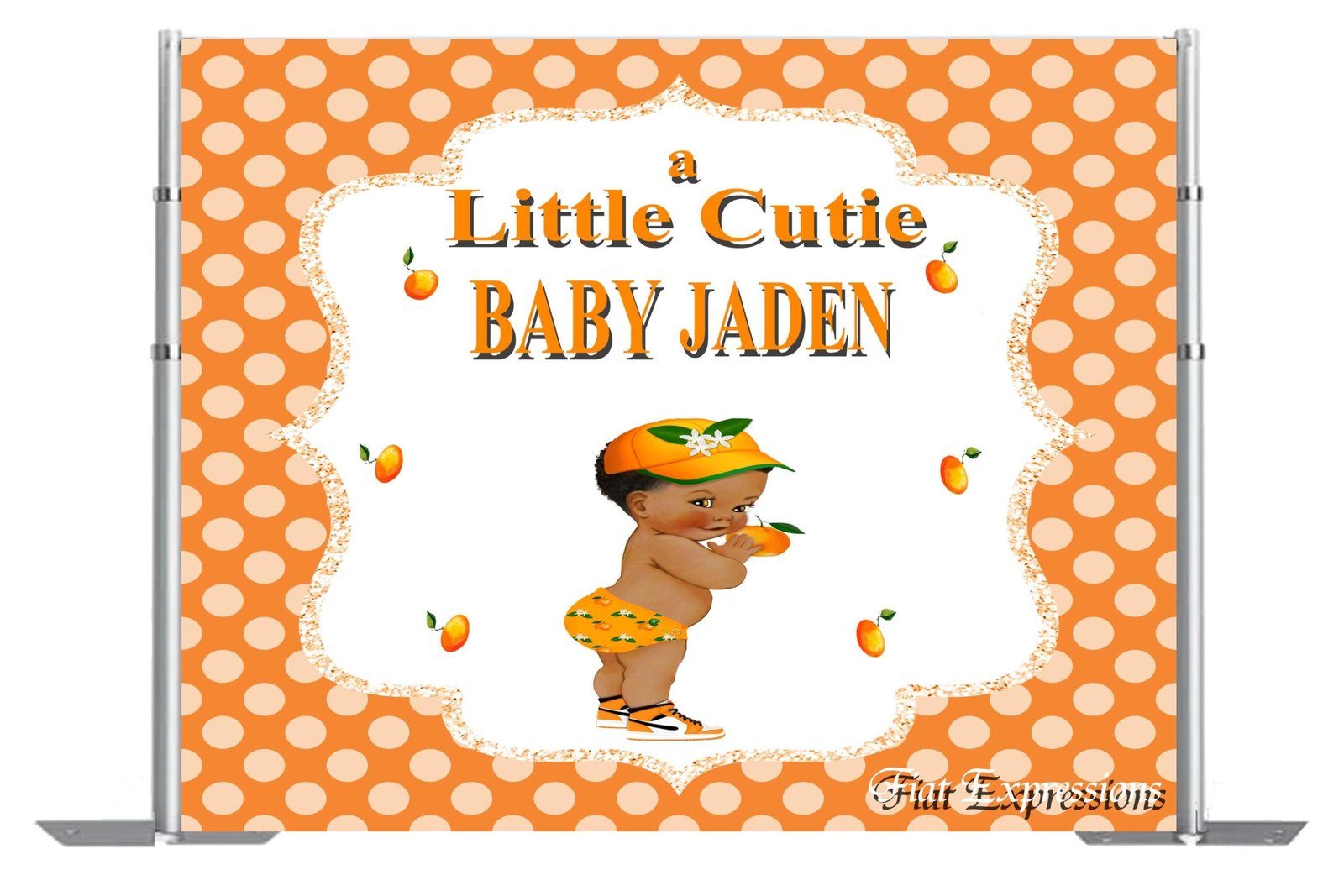 Little Cutie Orange Boy Baby Shower Poster Backdrop Digital File