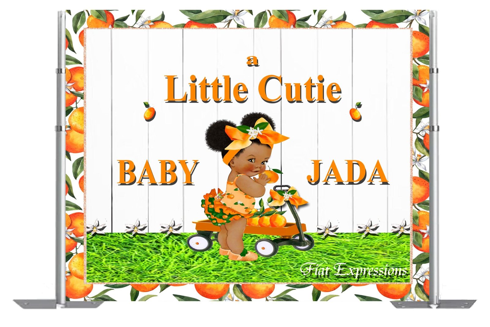 Little Cutie Orange Girl & Wagon Baby Shower Poster Backdrop Digital File DIGITAL