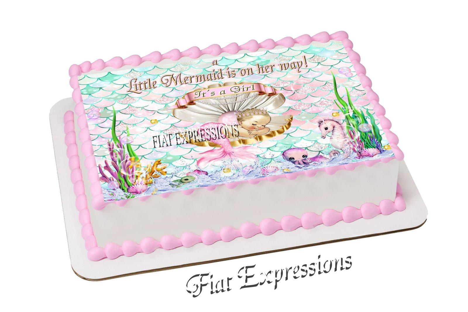 Mermaid Baby Shower Edible Cake Image Digital File is a creative way to decorate your baby shower cake. Our digital cake image designs are for sheet cakes or round cakes. You may select your choice of baby. This product is for Personal Use ONLY! This product is not for commercial use! We can customize the wording for you! This file will be email to the customer within 1-3 business days. This is not a physical product. The customer is responsible for getting the file printed at a local bakery or bakery supply store. We do not offer refund to any digital file and/or digital product.