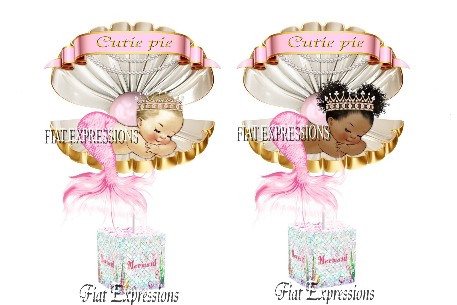 -1 Pink & Turquoise Mermaid Base decorated on all four sides