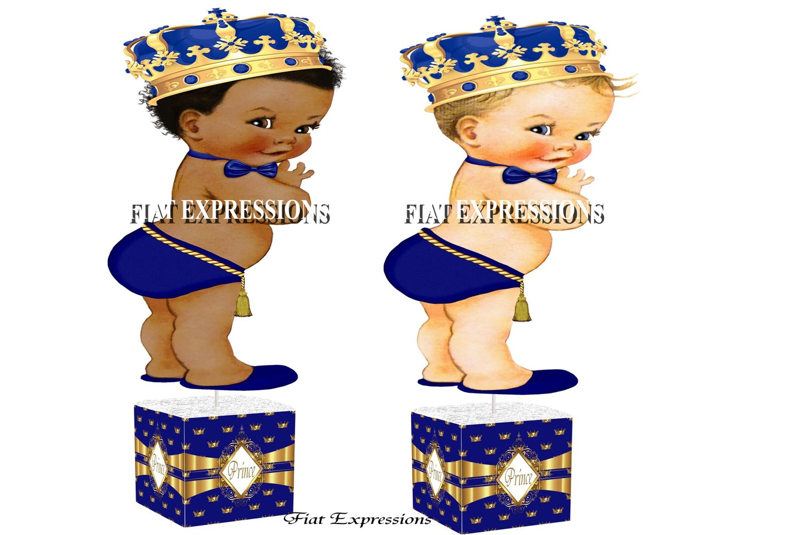 An elegant & affordable prince baby shower table centerpiece. You may pair our baby centerpiece with one of our baby shower diaper cakes, balloon bouquets, posters or edible cake images. Diaper cake, balloon bouquet, poster & edible cake image are not included in this price. This centerpiece comes with the following: