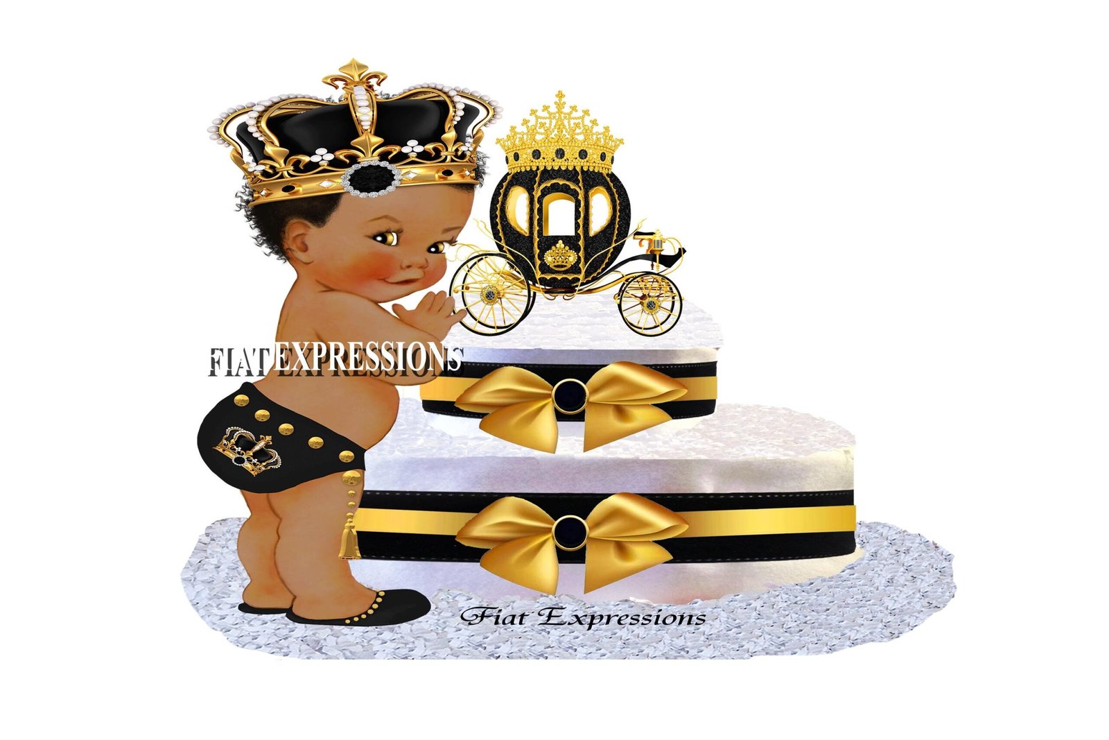 Prince Diaper Cake 2 Tier Black & Gold with Carriage/Prince Baby Shower Centerpiece and Gift