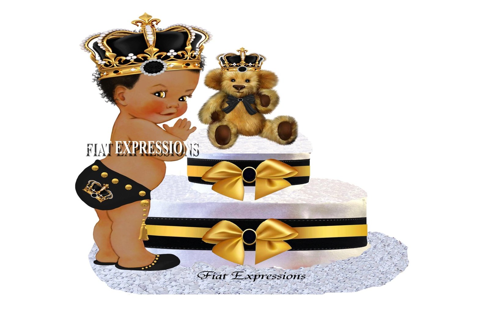 Prince Diaper Cake 2 Tier Black & Gold with Royal Teddy Bear/Prince Baby Shower Centerpiece and Gift