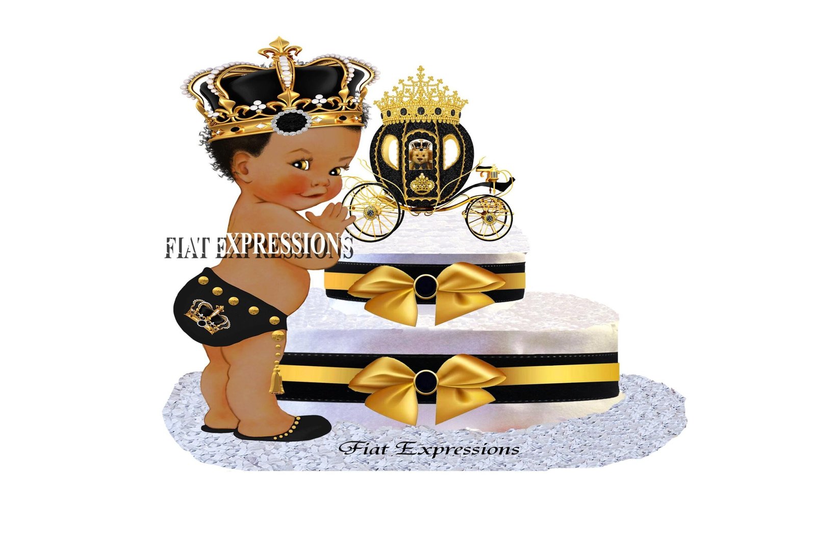 Prince Diaper Cake 2 Tier Black & Gold with Teddy Bear in Carriage/Baby Shower Gift and Centerpiece