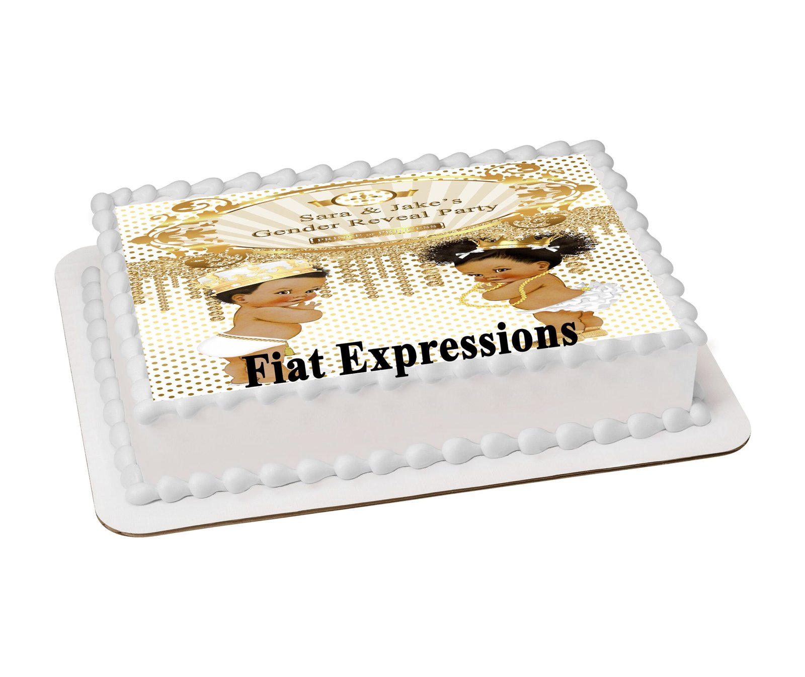 Prince Princess White Gold Gender Reveal Edible Cake Topper Image Digital File