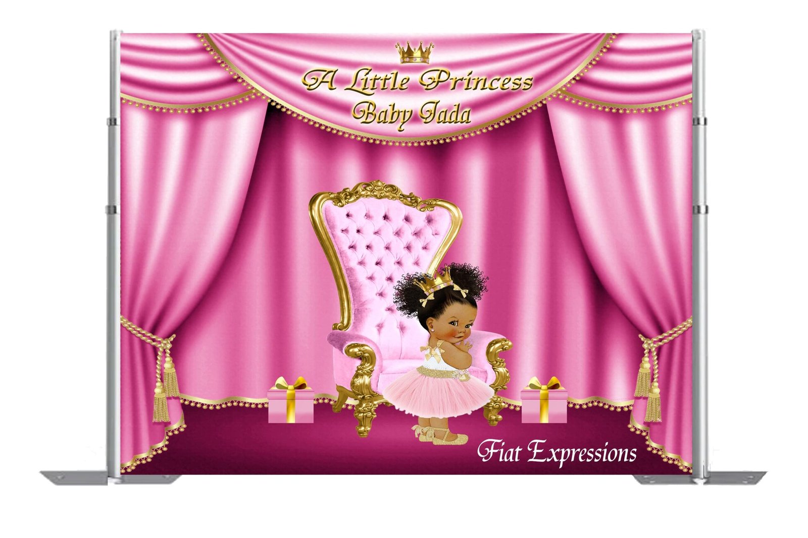 You may pair our Princess backdrop with one of our diaper cake, baby centerpiece, balloon bouquet or edible cake image for an additional price.