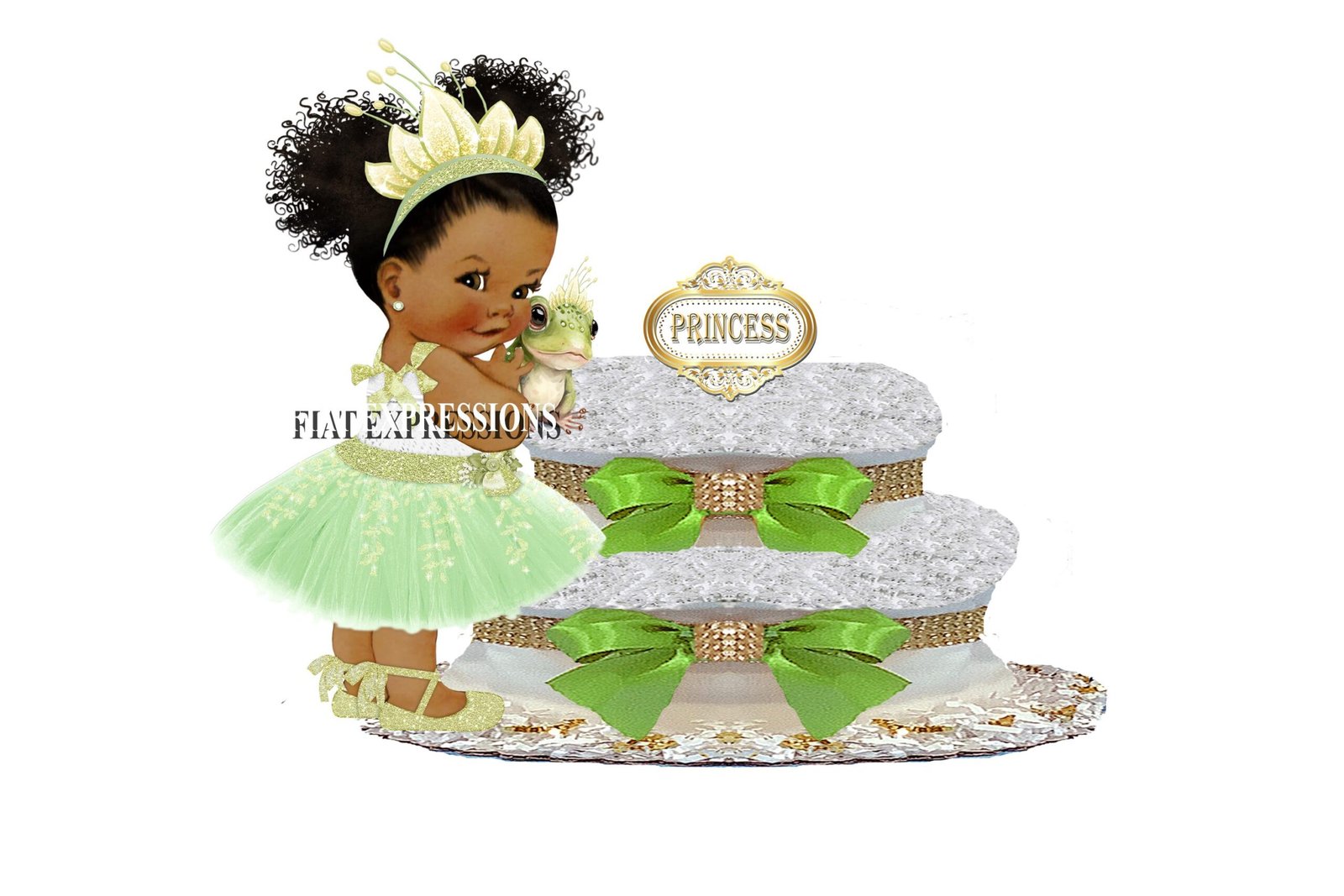 Princess Green with Baby Frog Diaper Cake, 2Tier Diaper Cake, Princess Tiana Themed Diaper Cake, Baby Shower Centerpiece & Gift