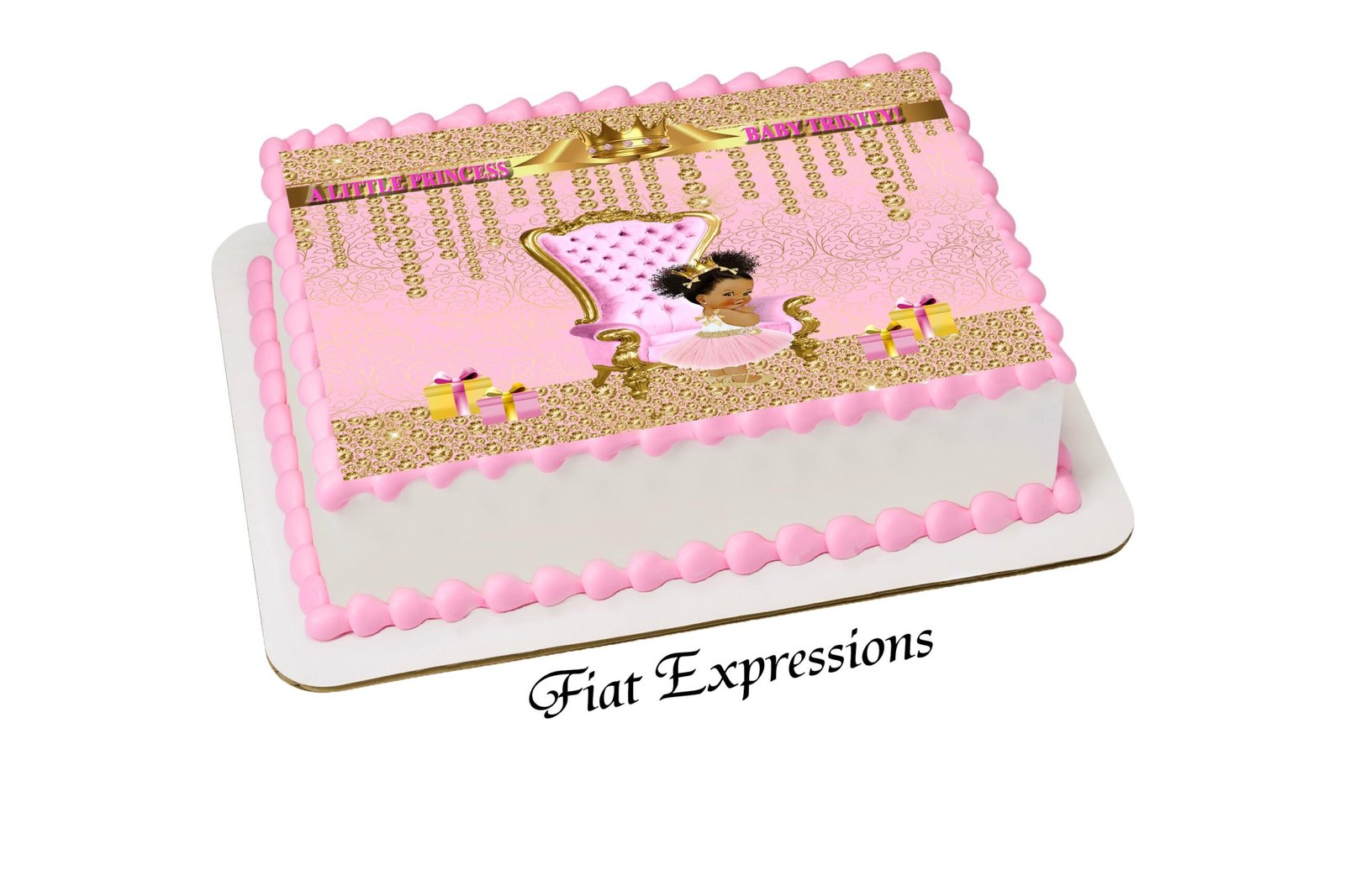 Princess Pink Gold Baby Shower Edible Cake Image Digital File