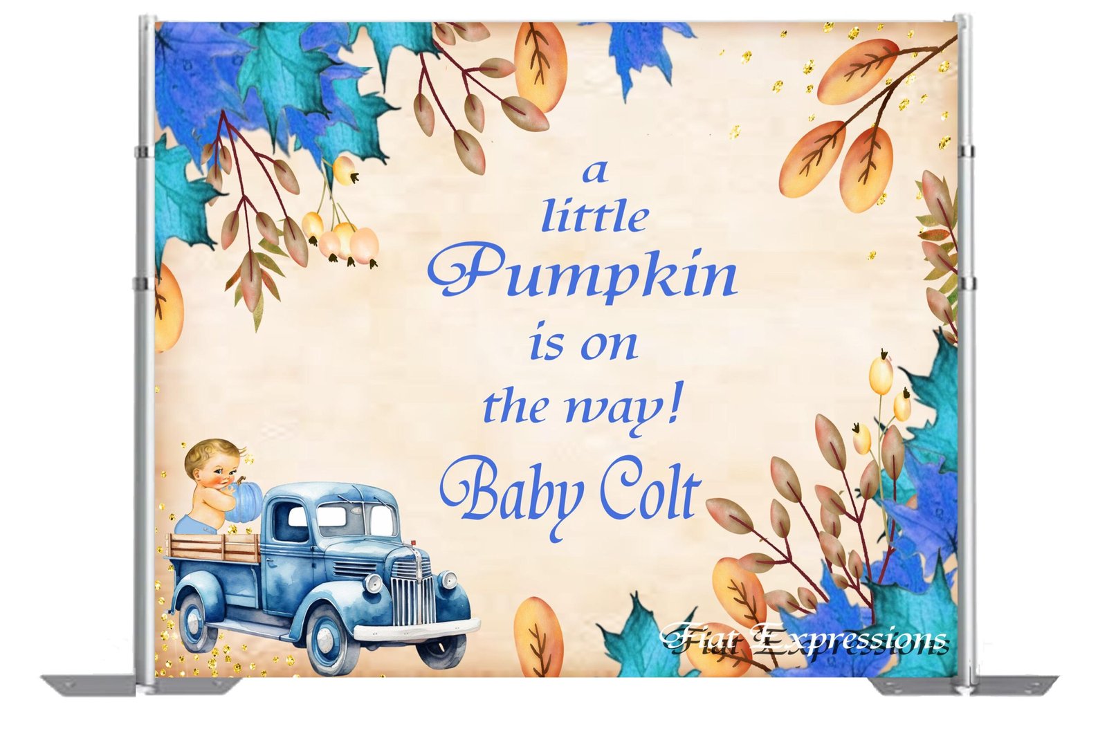 Pumpkin Boy in Truck Blue Baby Shower Backdrop, Autumn Baby Shower Backdrop, Fall Baby Shower Backdrop Digital File DIGITAL
