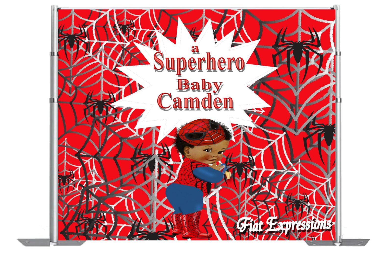 Spider Baby Superhero Blue& Red Baby Shower Poster Backdrop Digital File