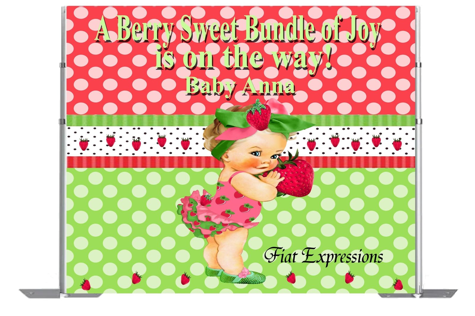 Strawberry Pink & Green Baby Shower Backdrop, Strawberry Baby Shower Poster, Strawberry Baby Shower Photo Prop, Strawberry Sign Digital File