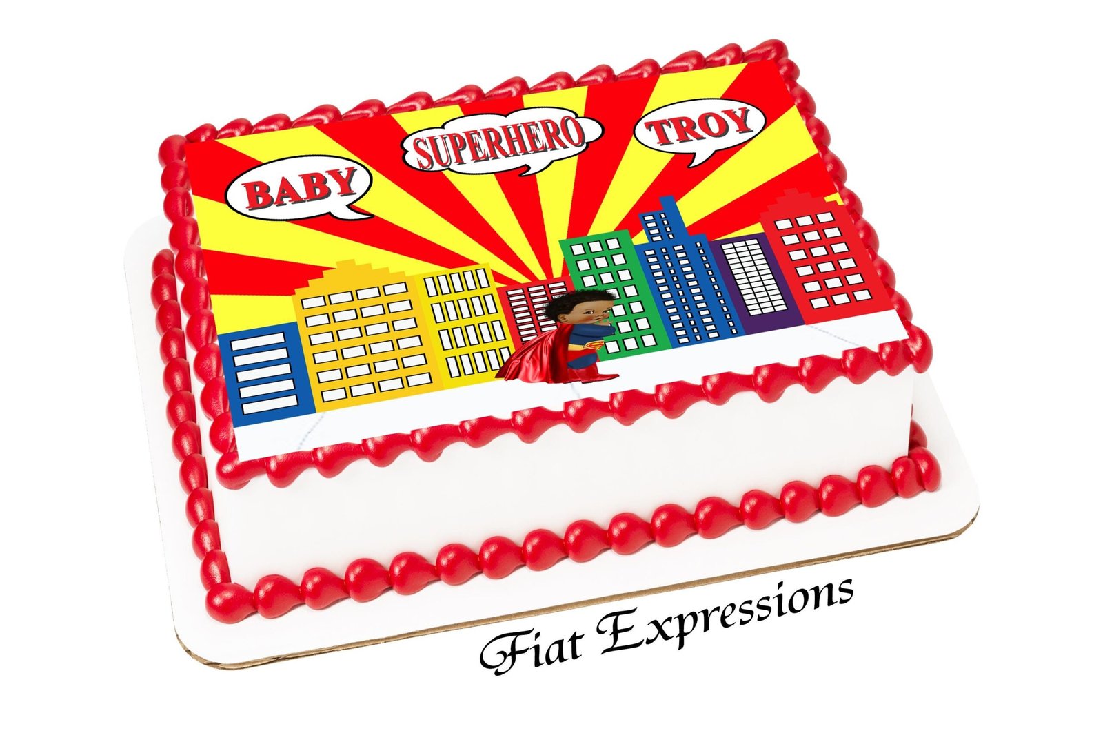 Superhero Red & Yellow Baby Shower Edible Cake Image Digital File