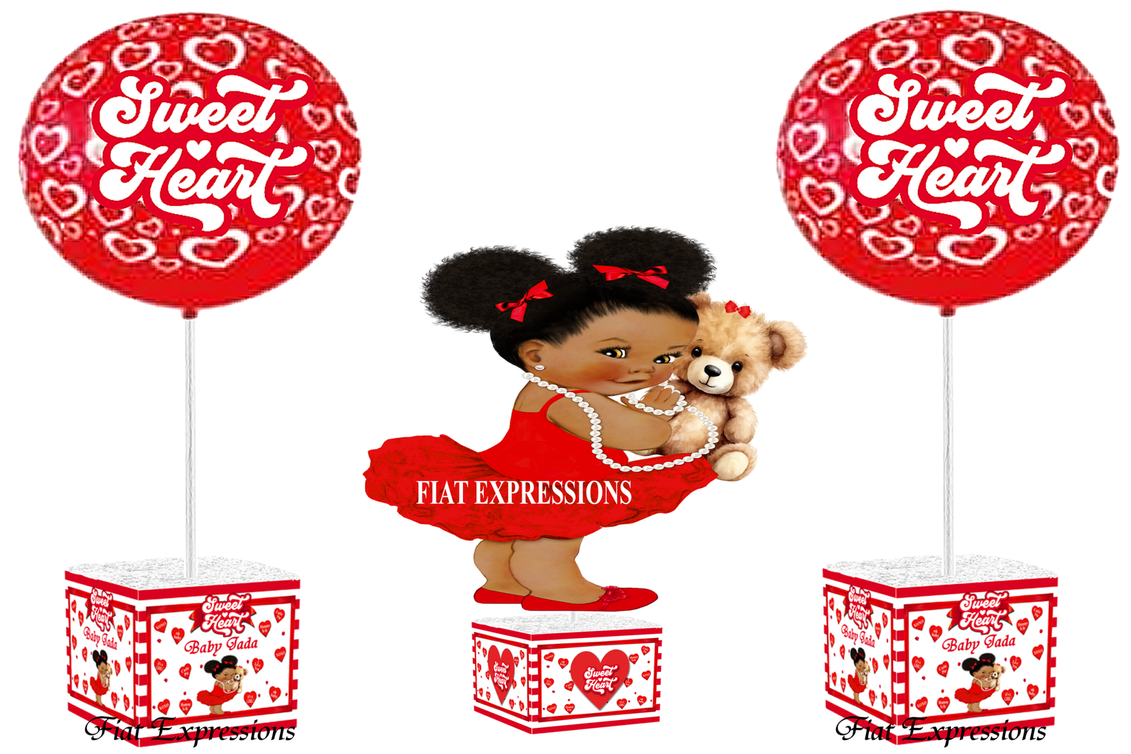 Sweetheart Baby Shower Centerpiece Set Hearts Red White Lines with Bear is created per order within 3-5 business days.