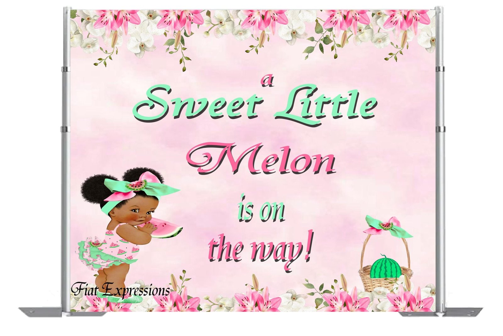 Watermelon Pink Girl Baby Shower Poster Backdrop Digital File